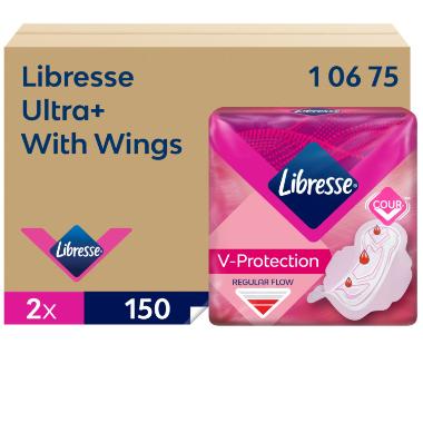 Bind Libresse Ultra+ Wing dispenser refill uden parfume hvid 2x150stk,2 pk x 150 stk/krt