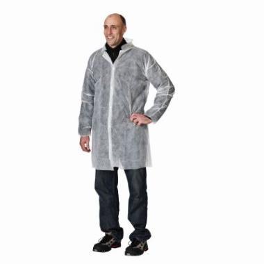 Engangskittel non-woven str XXL hvid m/trykknap,50 stk/krt